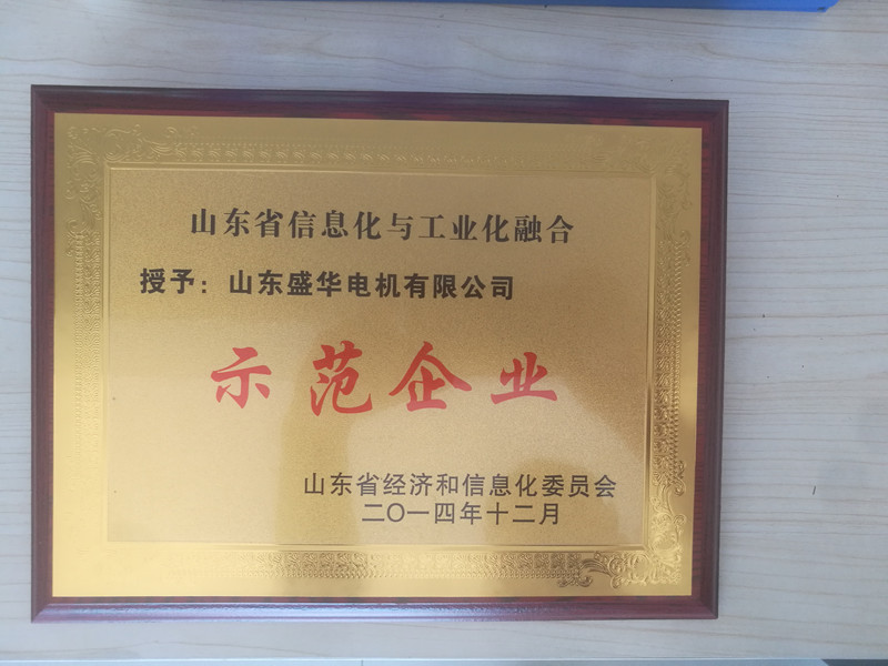 盛華電機(jī)公司資質(zhì)榮譽(yù)《信息化與工業(yè)化融合示范企業(yè)》