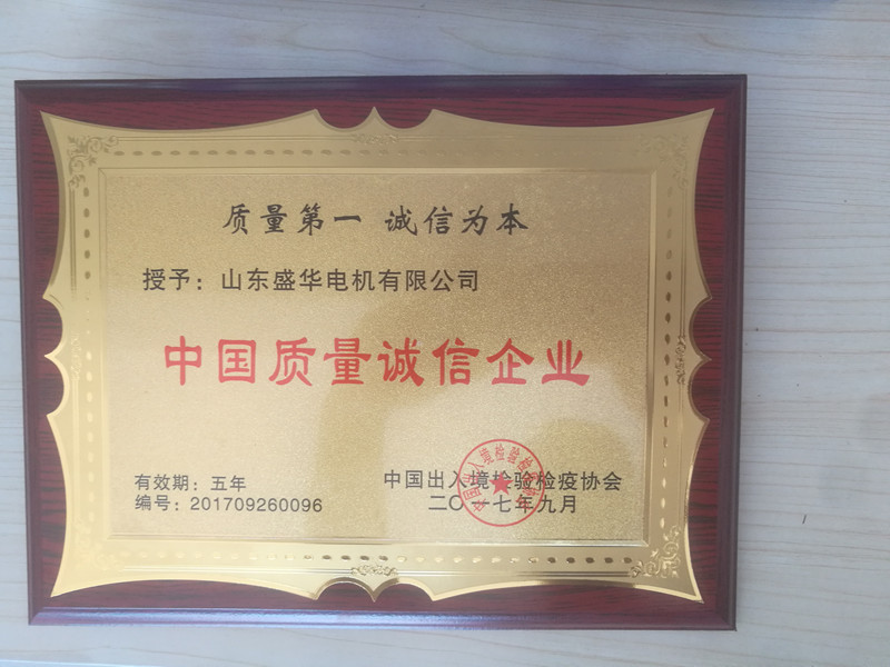 盛華電機(jī)公司資質(zhì)榮譽(yù)《質(zhì)量誠信企業(yè)》